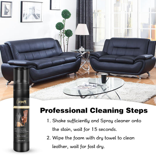 SIHOOPE Leather Cleaner Foam Wipe - Cleaning Furniture Car Seat Dashboard Interior Upholstery Couch Boot Bags Shoe Vinyl Fabric Products Care Dirt and Oil Stains Remover 200ML