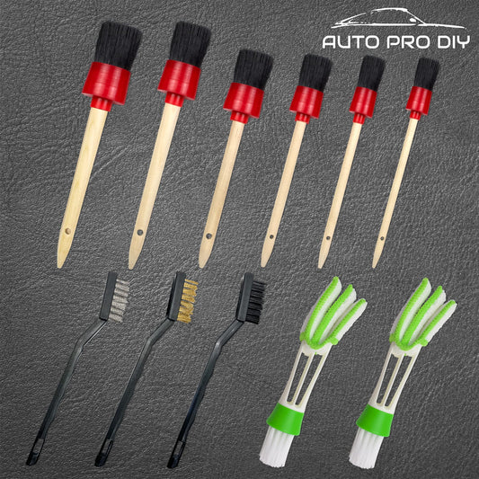 AUTO PRO DIY 11 Piece Car Detailing Kit Set - Car Wheels, Exterior, Interior Cleaning Detail Supplies - Boars Hair, Stainless Steel Wire, Duster Brushes