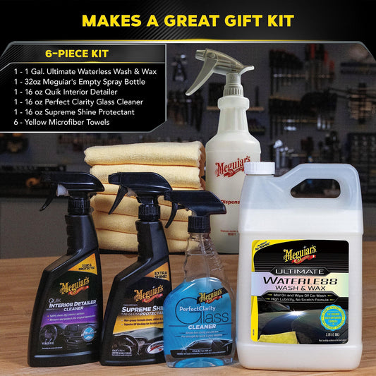 Meguiar's Classic Wash & Wax Kit, Car Cleaning Kit with Car Wash Soap and Wax, Includes Other Car Cleaning Products Like Detail Spray, Interior Cleaner, Tire Cleaner, and More